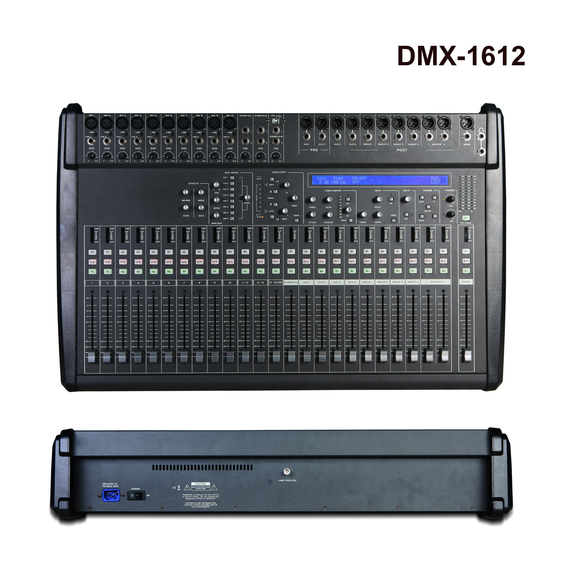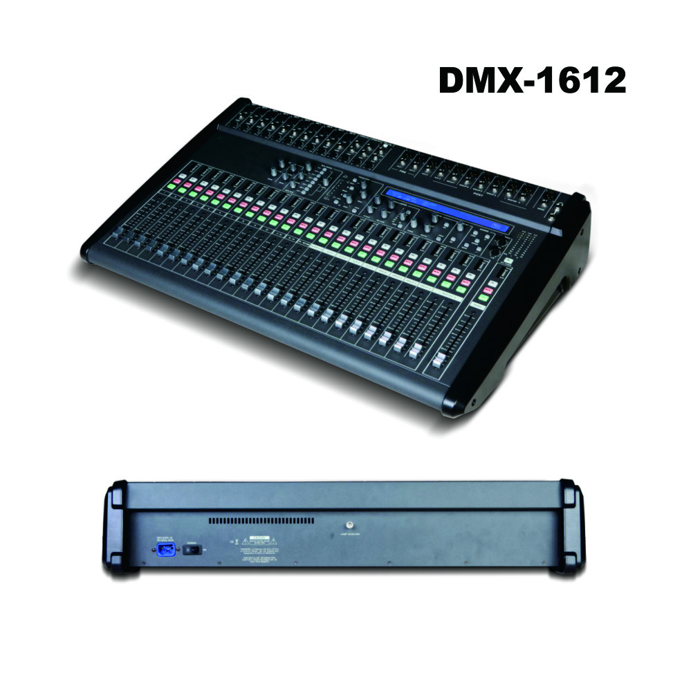 DMX-1612 has 16 channel TOTAL RECALL digital mixer, equipped with high-end microphone amplifier and 12 mixing buses, and sub-groups can be set.