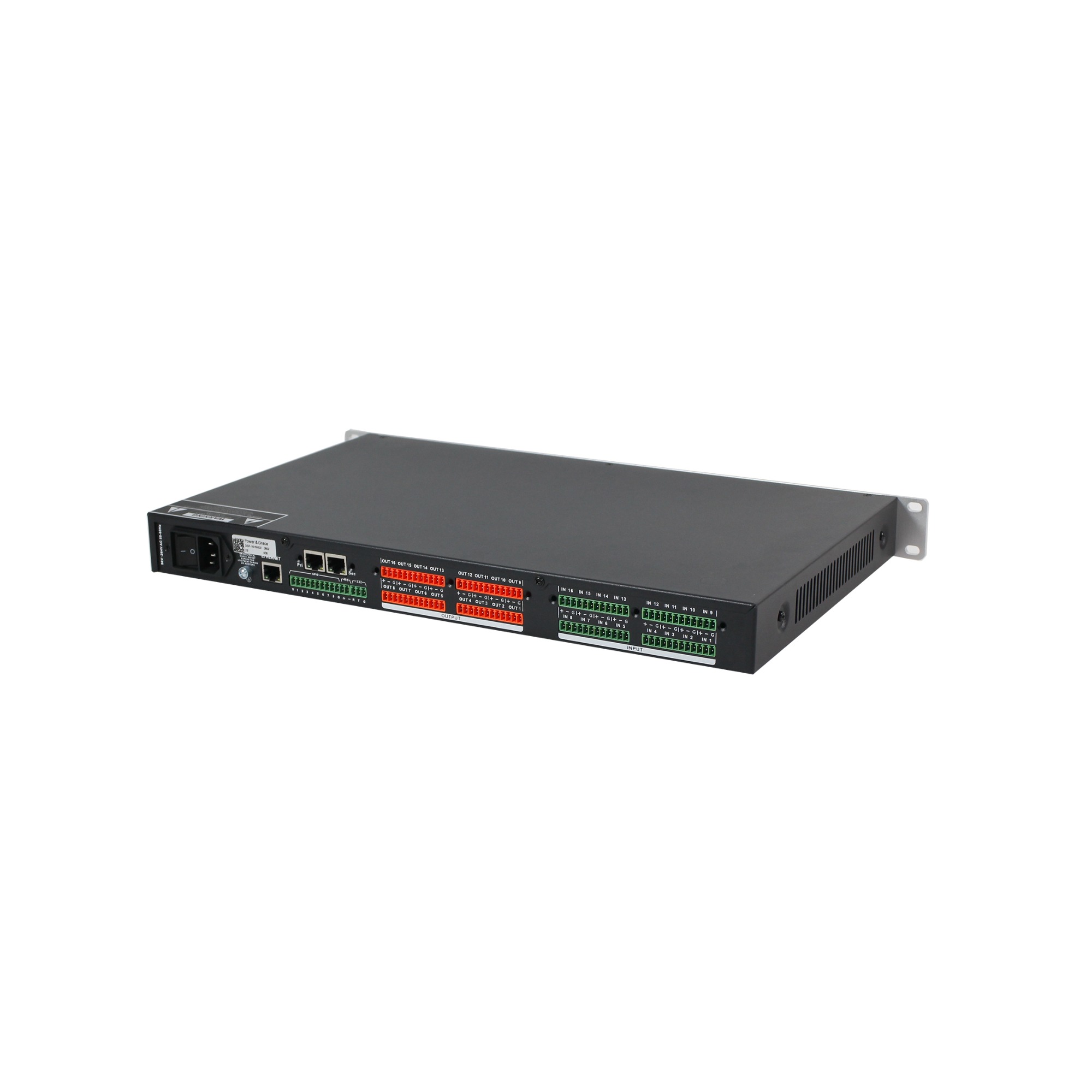 The DSP-1616N2/DSP-1616ND2/DSP-1616ND3 audio processor combines Auto Mixer, Matrix Mixer, and Feedback suppressor in one purpose-built DSP processor. At the same time, it has independent FIR/AFC/ AEC/ ANS/ AGC gain sharing automatic mixing, threshold automatic mixing and other processing modules. The /DSP-1616ND2/DSP-1616ND3 includes 16 mic/line analog inputs, 16 analog outputs to meet the needs of a wide range of audio processing applications such as boardroom, medium/large conference rooms, courtrooms, auditoriums and multi-purpose halls.
