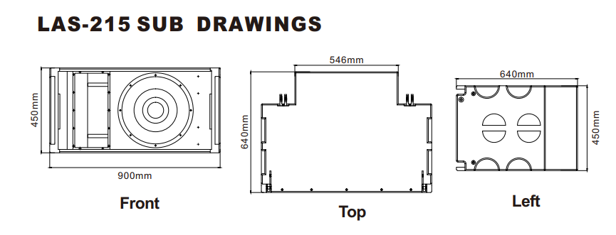 LAS-215 SUB is dual 15” subwoofer tailored for either touring or permanent installation. The speaker is Vented Band-Pass construction to achieve most compact cabinet, minimum distortion, optimal amplitude and smooth phase response. The cabinet is coated by abrasive wear resistant material finishing. Two 15” neo woofers with 3” voice coil produce super strong bass, which can easily satisfy all your demands at a sound system.