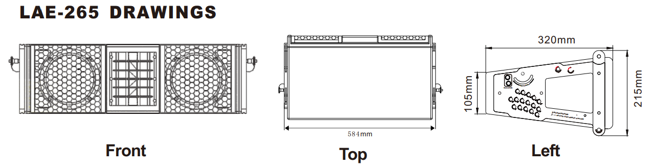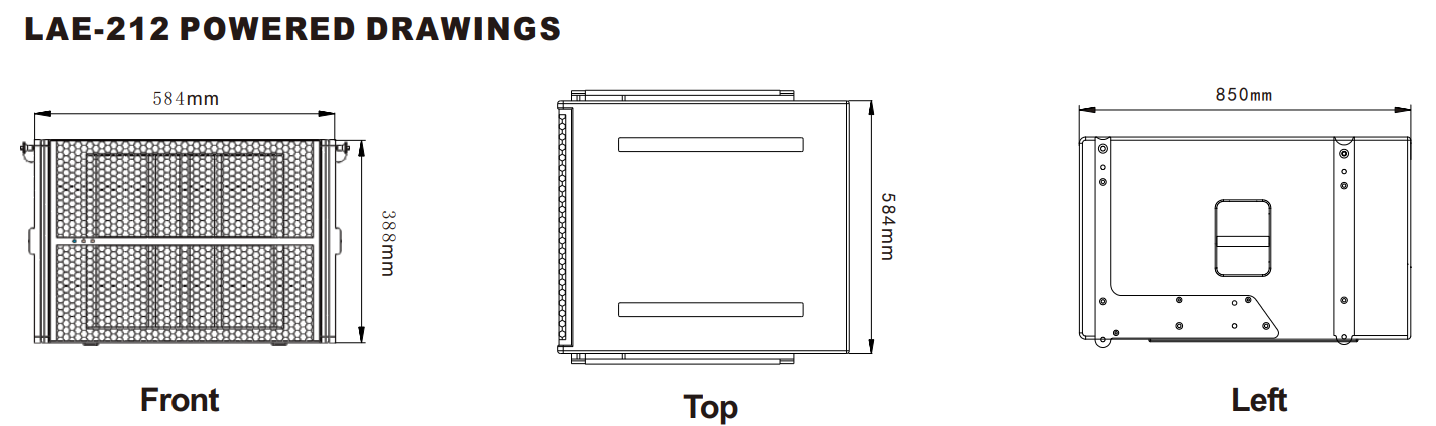 LAE-212 POWERED is the subwoofer comprising 2 pieces of 12" woofers while LAE-265 is the mid & high speaker comprising 2 pieces of 6.5" MF drivers and 1 pieces of 2" tweeter. Our engineers made a great effort in creating new technology for accomplishing this system. It is not just a simple active speaker system, It possesses distant PC control for the line array speakers, with functions of phase, delay, EQ, crossover correction. One piece of LAE-212 POWERED can drive four pieces of LAE-265. It satisfies the basic application of a line array.