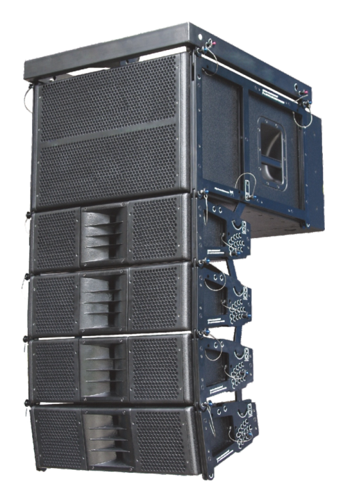 LAE-265 + LAE-212 POWERED active line array system is composed of an active subwoofer and passive mid & high line array speakers. The speakers can be either hoisted or ground stacked as a line array.